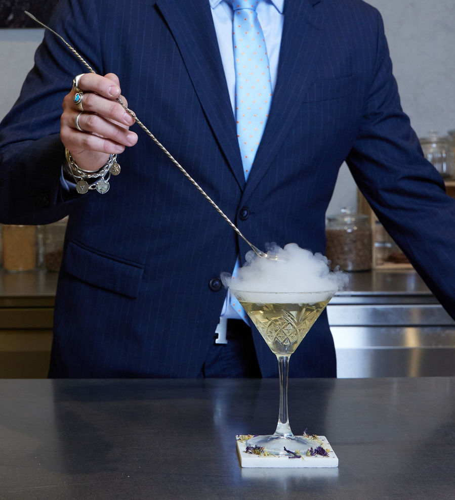 Nous élevons le service au rang de spectacle. En utilisant des techniques professionnelles et avancées de mixologie (incluant des approches culinaires et moléculaires), nous garantissons un divertissement sophistiqué et captivant qui enrichit l'expérience de vos invités.